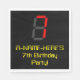 This fun and nerdy birthday-themed paper napkin design features a large number "7" having a red seven segment digital display inspired appearance, along with a custom name and the message "7th Birthday Party!" in nerdy yellow text, on a black coloured background. Fun, customized birthday themed paper napkins like this might be used at somebody’s seventh birthday celebration. [~Z0000388]