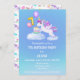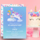 This adorable 7th birthday unicorn design, featuring stars, clouds, and rainbows, makes the perfect invitation for a child who loves unicorns.