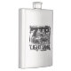 The product is a good size and came exactly as it was pictured. The lid is not attached to the flask, which could be dangerous on drunken nights... The print came out surprisingly well and looks very sharp. Would definitely recommend.
