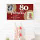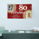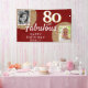 80 and Fabulous Gold Glitter 2 Photo 80th Birthday Banner. Faux gold glitter on red with 2 photos - you can use old and new photos. Add your name and age, and make a birthday party backdrop for a woman's milestone celebration.