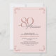 This beautiful invitation features hand lettered calligraphy artfully presenting 'eighty' in luxurious hand lettering against a blush pink background, adorned with delicate pink swirls in the corners top and bottom. This image will have all your guests excitedly anticipating your fabulous eightieth festivities!