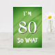 80 So what 80th Birthday Funny Quote Card. A great greeting card for someone celebrating their 80th birthday. It comes with a funny quote I`m 80 so what, and is perfect for a person with a sense of humour. Customize the text inside or erase.
