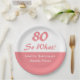 80 so what Funny Saying Script Pink 80th Birthday Paper Plate