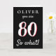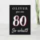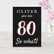 80 alors ce Drôle dire Typographie Black 80th Birthday card. 80, c'est drôle et inspirant, alors que pour un homme ou une femme qui célèbre le 80ème anniversaire. Personnalisez cette carte avec votre nom, votre âge et votre texte à l'avant, à l'intérieur et à l'arrière de la carte.