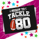 This football birthday design is perfect for a 80th birthday football theme birthday party to celebrate turning 80 years old! Features 'Ready To Tackle 80' 80th birthday football quote with football graphic. Perfect for anyone who loves football turning 80 years old!