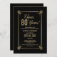 Une invitation moderne à la fête du 80e anniversaire en noir et or. Cliquez sur "Personnalisez ce modèle" pour ajouter vos propres informations.