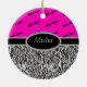 80's Girl Neon Pink & Zebra Monogram Ceramic Ornament