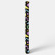 1980s style pattern in colourful shapes of green, yellow, blue and yellow on a black background.