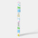 1980s style pattern in colourful shapes of green, yellow, blue and yellow on a white background.