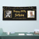 Celebrate any age birthday (shown for an 80th) with this editable black and gold banner sign featuring 2 photos (perhaps "then and now" pictures, your custom text shown in an editable hand-lettered calligraphy typography and gold and white string lights. EDITABLE COLOR: The black background colour and text fonts and colour can be changed to coordinate with your party colours by in the EDIT section. The sample is shown in the 2.5x6' indoor option--other sizes and "outdoor" are available on the ordering page. ASSISTANCE: For help with design modification or personalization, colour change, resizing, transferring the design to another product or if you would like coordinating items, contact the designer BEFORE ORDERING via the Zazzle Chat MESSAGE tab below or email makeitaboutyoustore@gmail.com.