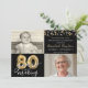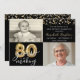 80th Birthday 2 Photos Black Gold Balloons Script Invitation