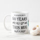 Personalized 80th birthday celebration funny coffee mug gift. Party fun gift for those 80 year old men and women. A unique special age milestone for family or friends with "I've lived on this earth for 80 years and all i got was this mug, what a cheek!" Add their name and date of birth to this funny cheeky style gift. Cute and bold typography for those entering their 80s. Create your own special surprise using the template supplied. Excellent for a mother or father, brother or sister and of course that best friend with a sense of humor.