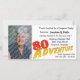 Upload your own photo to this adventure inspired card. Customizable text for all your party information. Additional cover graphics include Indiana Jones-type text which reads: "80 the new Adventure". Copy and paste this text into your browser to see the matching accessories in our sister store: http://www.zazzle.com/malibuitalian*/80th+birthday+gifts