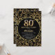 80th Birthday Black and Gold Floral Pattern Birthday Invitation. For further customization, please click the "Customize it" button and use our design tool to modify this template.