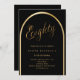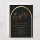 An elegant 80th birthday invitation. A black background with a golden arch on the front.