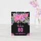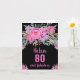 Elegant 80th birthday card with a pink watercolor floral design on a black background. Personalize with your name and text.