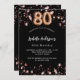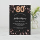 A classic black background, decorated with rose gold stars. Personalize and add a name and party details. The number is written with a balloon style script.