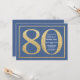 80th Birthday Blue and Gold Glitter Invitation