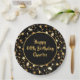 80th Birthday Brush Script Gold Stars Custom Black Paper Plate