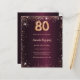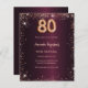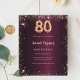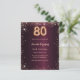 For an elegant 80th birthday. A burgundy gradient background colour. Decorated with gold faux glitter dust. Personalize and add a name and party details. The name is written with a hand lettered style script.