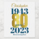 A bold and striking 80th birthday date wine label. This special milestone birthday bottle label consists of birth and birthday date in blue typography - with the 80 and name highlighted in a gold effect font. Add a message for a custom gift or birthday party personalized drinks.