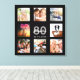A unique 80th birthday gift or keepsake, celebrating her life with a collage of 8 of your photos. Add images of her family, friends, pets, hobbies or dream travel destination. Personalize and add a name, age 80 and a date. Grey and white coloured letters. A chic black background. This canvas is also available in our store with white or rose gold coloured background.