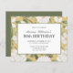 A beautifully feminine party invitation to celebrate a 80th birthday in elegant botanical style, This design features an elegant botanical pattern of white flowers and leaves in watercolor palette of ivory, cream sage and moss green on a light yellow ivory background with your wedding details displayed in a modern combination of cursive and serif fonts over a white frame with a chic green border.