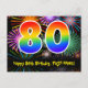 80th Birthday – Fun Fireworks Pattern + Rainbow 80 Postcard