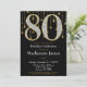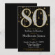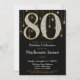 An elegant 80th birthday party invitation in black and gold, featuring a large 80 with diamonds and gold appearance along with a glittery curtain of gold lights. For the 80th birthday man or woman in your life.