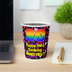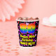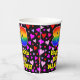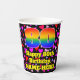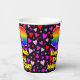 This happy and cheerful birthday-themed paper cup design features a large number “80” with a rainbow spectrum gradient inspired pattern, along with the message “Happy 80th Birthday,”, and a customizable name. The background features a pattern of pink, purple, and red heart shapes of various sizes. Fun, happy paper cups like this might be fun to use at a birthday party being held in celebration of somebody’s 80th birthday. [~Z0000548]
