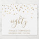 Help her celebrate her 80th birthday in style with this simple but elegant design, featuring faux gold foil triangular confetti sifting down on the word "eighty" in gold handwriting font on a white background. Personalize it with the name of the honoree in gold sans serif font, along with the occasion and date below in smaller gold type.