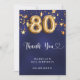 80th birthday navy blue gold stars thank you card