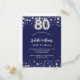 A modern, stylish and glamourous invitation for a 80th birthday party. A navy blue background, decorated with faux silver stars. Personalize and add your name and party details. Number 80 is written with a balloon style font.