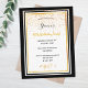An elegant birthday party invitation card for a 80th birthday for both men and women. Templates for your information. Black and faux gold frames and golden confetti rain. Elegant white background, black and golden letters. The name is written with a modern hand lettered style script.