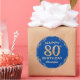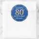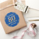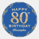 80th Birthday Party Blue and Gold Glitter Frame Classic Round Sticker