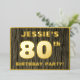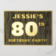 The front of this bold eightieth birthday party foil invitation card features a customizable name, a large number “80th”, the message “BIRTHDAY PARTY!”, and a border, all in foil. The background of the front features a rustic, yet elegant, faux wood grain appearance inspired pattern. The back features personalized details about the event, such as the date, time, venue/place, and any other information that may be useful. Editable invitations like these might be used to invite attendees/guests to a birthday party being held to honour somebody’s 80th birthday. [~Z0000598]