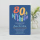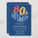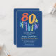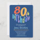 A colourful and fun 80th birthday party invitation. This fabulous invitation features bold modern typography on a blue background. Easy to personalize with your own 80th birthday party celebration details.