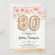 80th birthday party invitation. Elegant design in faux glitter gold with floral accent. Invite card with gold number 80 balloons, script font with confetti. Blush coral pink, white. Perfect for a stylish eightieth bday celebration. Message me if you need custom age.