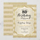 80th Birthday Party Invitation. Elegant design in gold. Features faux glitter gold stripes, stylish script font and confetti. Perfect for a glam birthday celebration.