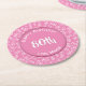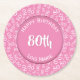 80th Birthday Party Number Pattern Pink and White Round Paper Coaster