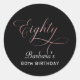 80th Birthday Party Rose Gold Script Classic Round Sticker