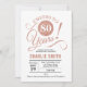 80th Birthday Party Invitation in Faux Rose Gold and White. Features stylish script font. Cheers to 80 years! Can be personalized into any age. Perfect for a glam womens bday celebration