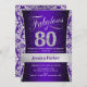 Elegant invite card with faux glitter silver and diamonds. Features damask pattern and script font. Fabulous at eighty! Classic design perfect for an stylish party. Please message me if you need a custom age.