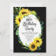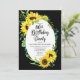 Classy and stylishly modern sunny sunflowers and eucalyptus greenery frame design "80th Birthday Party" on an editable black background. Back features a coordinating sunflower bouquet also on an editable black background.