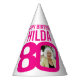 Bold add your own photo and name white with bright pink text party hat. Ideal for a special ladies 80th birthday party celebration. Other matching birthday items and colour options are available. Original graphic art and design by www.mylittleeden.com