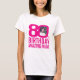 80th Birthday amazing mum pink text, custom photo, and mum wording t-shirt. Fun 80th mothers birthday personalized photo hot pink and white birthday tee design. Personalize this birthday shirt with a photograph in the middle of the number 0. Great idea to gift to your mum and for adding some fun to a milestone eightieth birthday party or event. Other matching items and colours are available. Exclusive design by Sarah Trett for www.mylittleeden.com