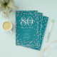 80th Birthday Program Silver Teal Glitter Menu