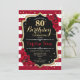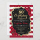 80th Birthday - Red Gold Black White Stripes Roses Invitation
