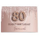 Elegant, classic, glamourous and girly for a 80th birthday party. Rose gold and blush pink, gradient background. Decorated with rose gold, pink drips, paint dripping look. Personalize and add a name. With the text: Happy Birthday. The name is written with a modern dark rose coloured hand lettered style script. Number 80 is written with a balloon style font.