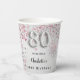 80th birthday silver pink glitter paper cups